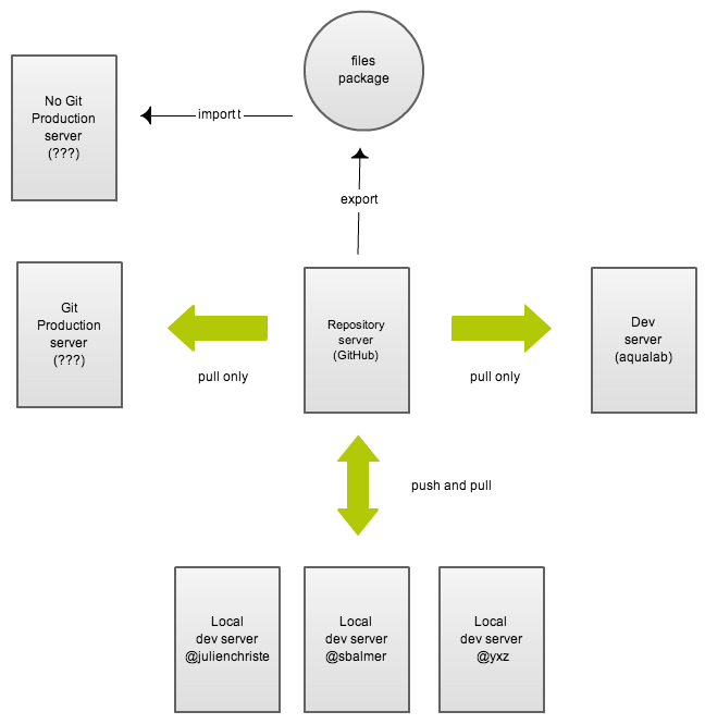 | Development | aqualab | http://aquaverde.nine.ch | {tag} (eg.: v1.2) | test server where customer can give us feedback before launch |