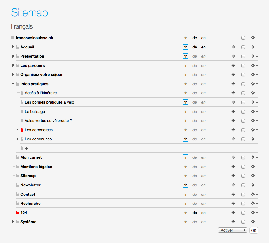 "Pages" est la rubrique principale du CMS. Elle permet de gérer, d'éditer, de supprimer et de créer les pages de votre site.