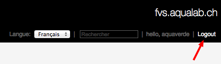 Pour vous déconnecter, cliquez sur "Logout" en haut à droite de la page :